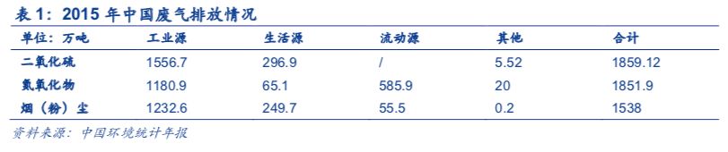 大气污染的源头可分为三类:一是工业源,包括燃煤电厂以及钢铁、水泥生产等工业过程中的废气排放;二是生活源,主要是居民供暖、餐饮业等造成的污染;三是流动源,主要为机动车、非道路交通工具和机械设备的废气排放。据中国环境统计年报数据,2015年工业源对二氧化硫、氮氧化物和烟(粉)尘等大气污染物的贡献最大,占比分别为83.7%、63.8%和80.14%,是大气污染的最主要排放源。