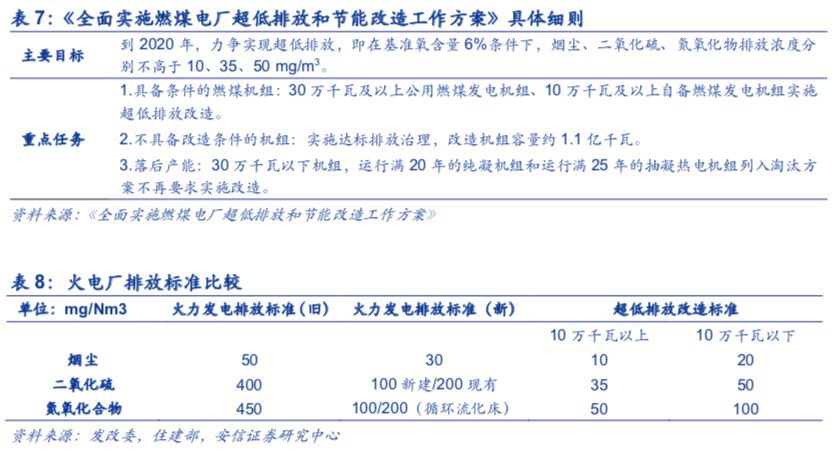 2015年12月,《全面实施燃煤电厂超低排放和节能改造工作方案》出台,明确了燃煤机组全面实施超低排放改造。2016年,国家能源局、环保部发布《关于印发2016年各省(区、市)煤电超低排放和节能改造目标任务的通知》,进一步制定各地区煤电超低排放和节能改造的目标任务,将任务分解细化。